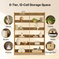 - 6-Tier Double Wide Bookshelf, 71" Bookcase Display Rack with Open Shelves
