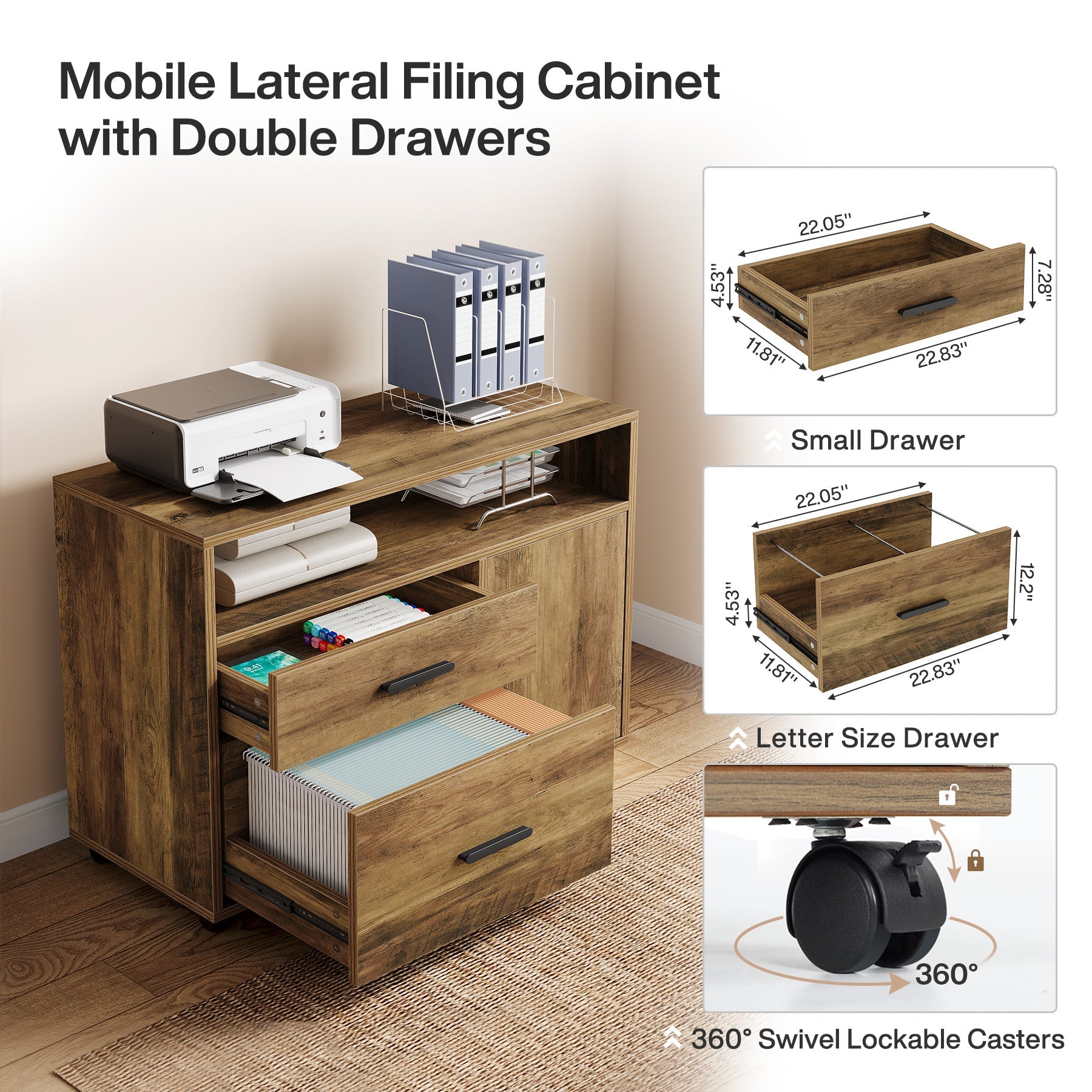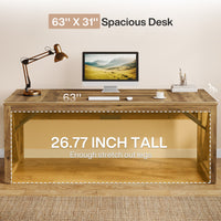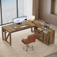 - L-Shaped Executive Desk, 63" Computer Desk with Drawer Cabinet