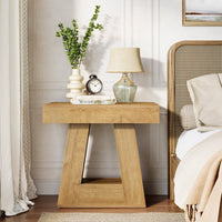 - 2-Tier Nightstand, Wooden Bedside Table with Trapezoid Base