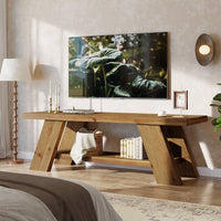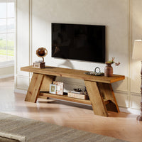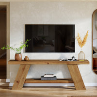 3. Solid Wood TV Stand with 2-Tier Shelf, 63" TV Media Console for TVs up to 75"