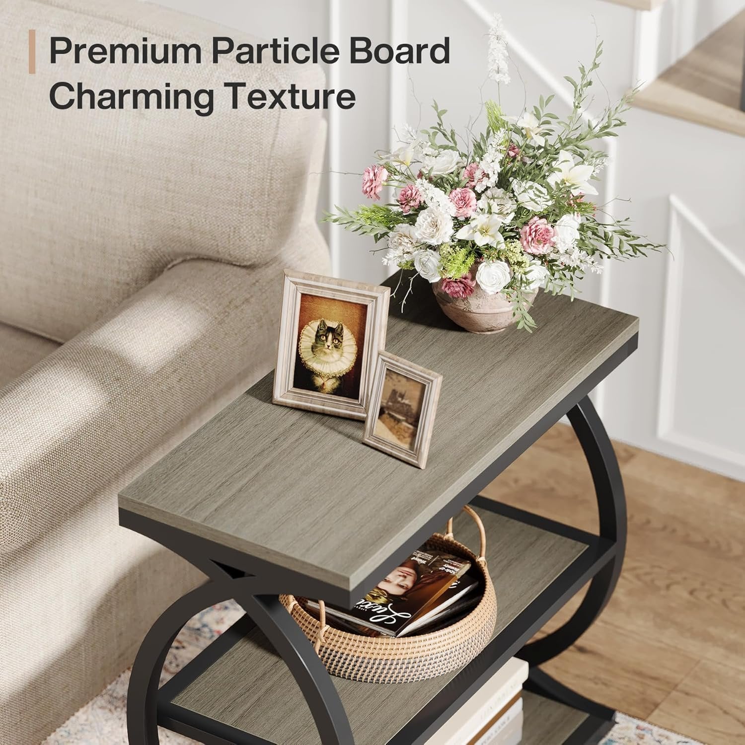 - 23.6" End Table, Narrow 3-Tier Side Table Nightstand for Living Room