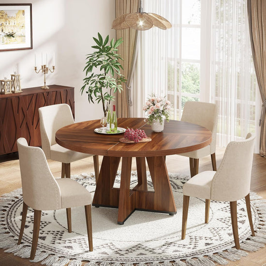 47" Farmhouse Dining Table, Round Wooden Kitchen Dinner Table for 4 People