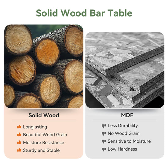 Premium Solid-Wood Construction - Made from solid wood featuring natural wood grain, this high-top table effortlessly enhances any decor style. Its unique crossed-legged design ensures exceptional stability, reducing wobble during daily use.