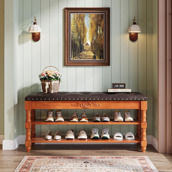 Convenient Shoe Organization - Say goodbye to hallway clutter with two dedicated storage shelves. Efficiently organize and store 8-10 pairs of shoes, boots, or slippers, making this bench the perfect shoe storage solution to maintain a tidy home.