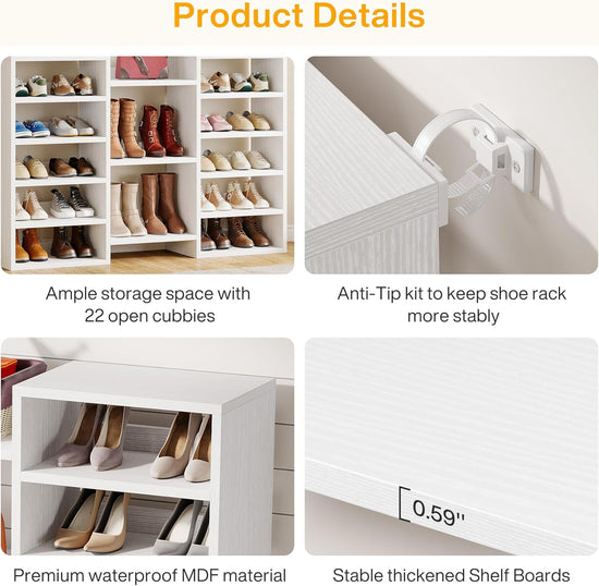 Easy Assembly and Maintenance - The shoe rack comes with detailed instructions and all necessary hardware for quick assembly. The smooth, scratch-resistant white panels are easy to clean, maintaining both style and practicality.