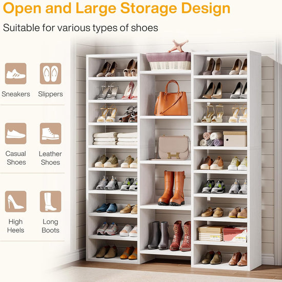 Spacious Storage Solution - This 14-tier white tall shoe rack features 23 open shelves and a top storage area, offering ample space to organize sneakers, boots, heels, and bags. It can hold up to 46 pairs of shoes, making it an ideal choice for small spaces.