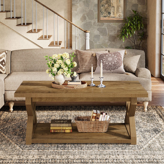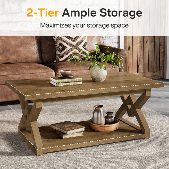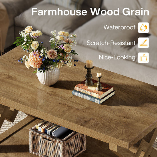 Farmhouse Charm - With a classic X-shaped base and a natural wood-like grain finish, this table effortlessly blends with farmhouse, vintage, or casual home decors. It brings a warm and inviting touch to your living room - a perfect centerpiece for family gatherings.