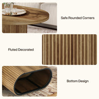 Stylish Design - This oval coffee table combines minimalism and sophistication with its stylish fluted base, adding visual appeal to any space.