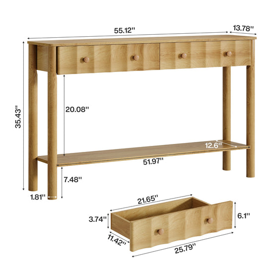 55" Console Table with 2 Drawers, Fluted Entryway Sofa Table with Open Shelf