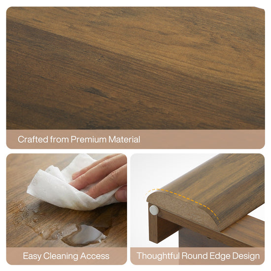 Elegant Design - Marrying modern elegance with a touch of vintage charm, this shelf features a timeless wood grain finish. Its minimalist, seamless lines and subtly curved edges of the uprights seamlessly blend with various interior styles.