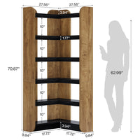 - 6-Tier Corner Bookshelf, 70.9" Bookcase Display Rack with Open Shelves