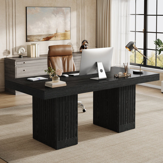Modern Appeal - This sleek black office desk with refined edges enhances any office decor, perfect for home or executive offices.