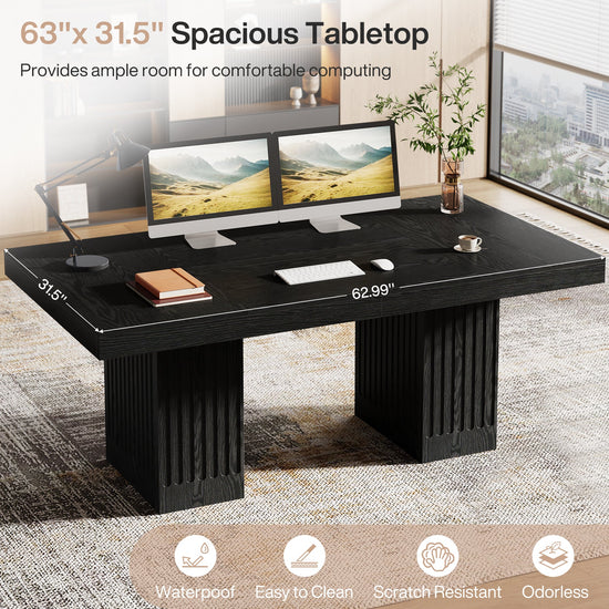 63" Executive Desk, Modern Office Computer Desk with Double Pedestal