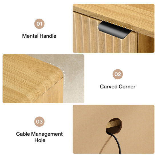 Mindful Design Elements - A pre-drilled cable hole conveniently lets you tidy up unruly cables. The soft-close hinges ensure quiet and safe closure of the cabinet doors, eliminating concerns over accidental finger pinching.