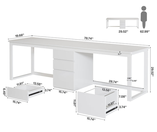 78.7" Two Person Desk, Modern Double Computer Office Desk with 3 Drawers