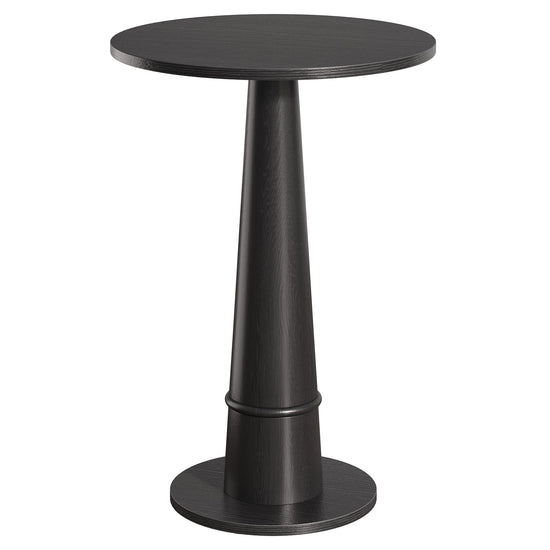 Sleek Minimalist Design - Boasting a matte black finish, our small bar table features a round tabletop and an hourglass base, creating a modern and sophisticated aesthetic with its geometric silhouette.