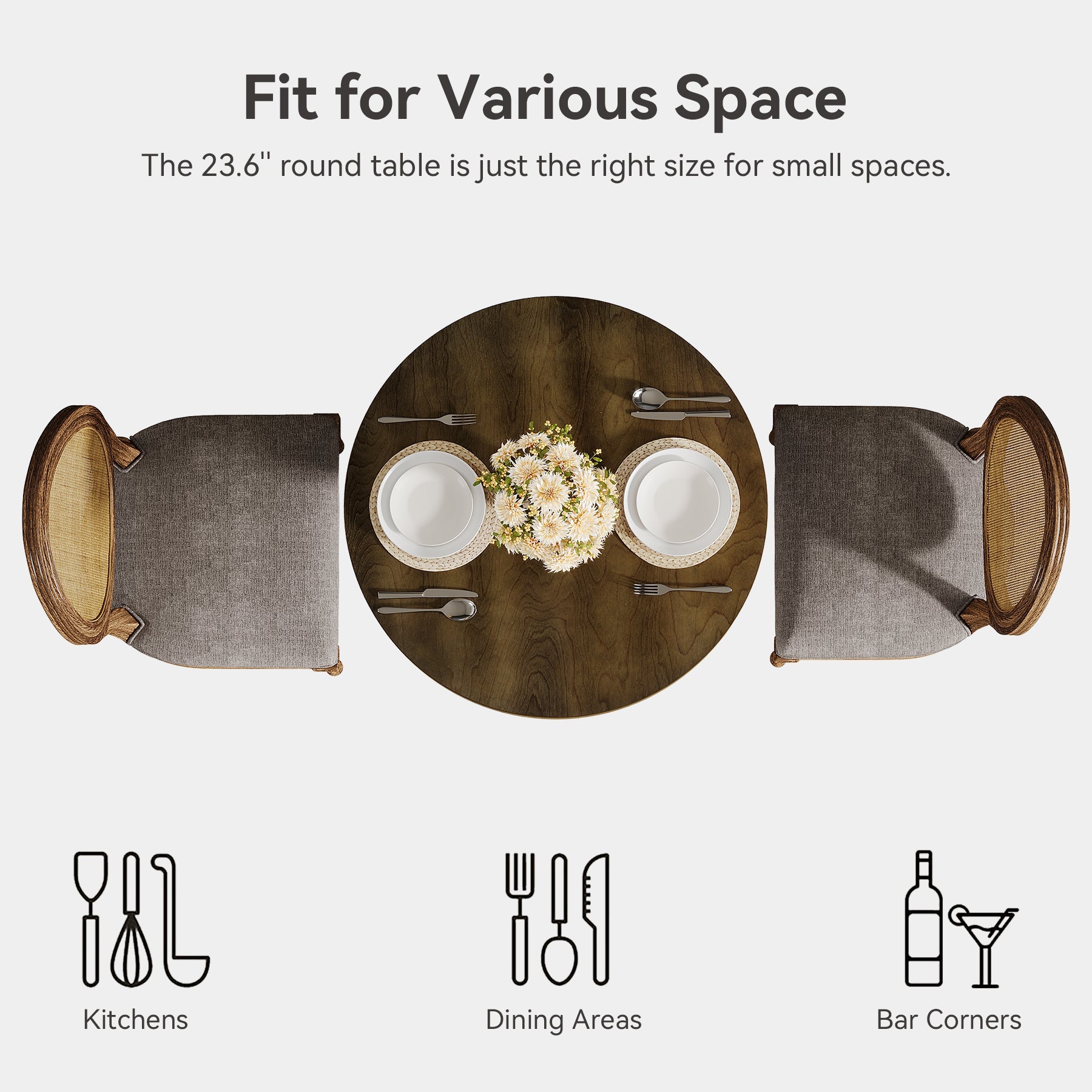 Perfect for Two - This charming 24-inch round table is designed for intimate meals for two, making every occasion special.
