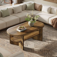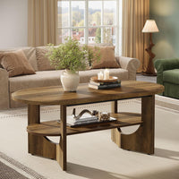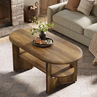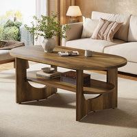 - 47.2" Coffee Table, Wooden Oval Center Table with 2 Tiers of Shelves